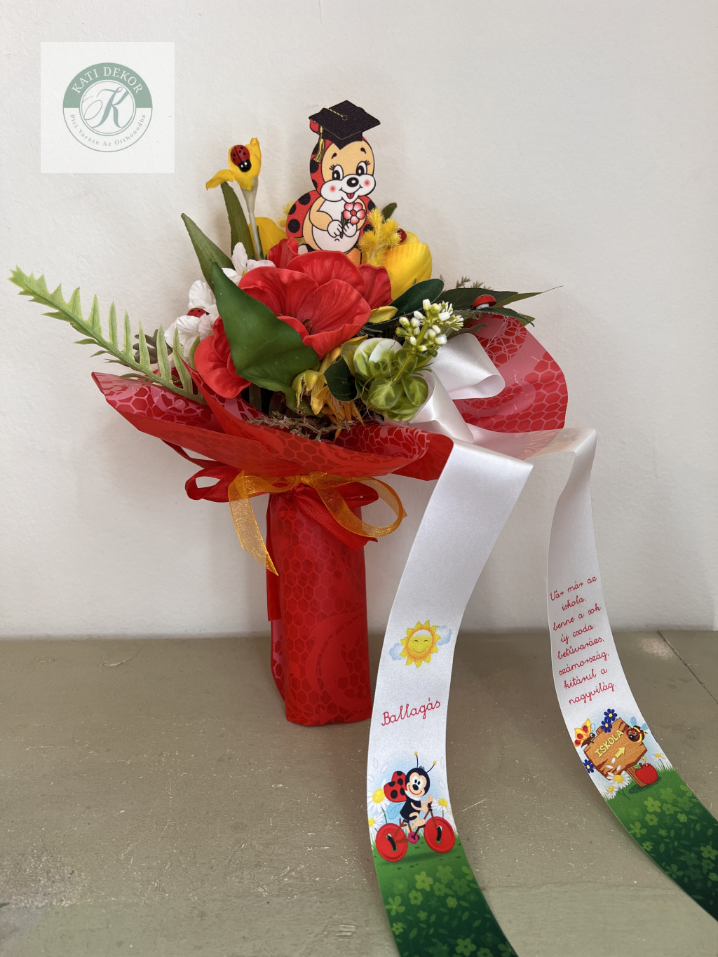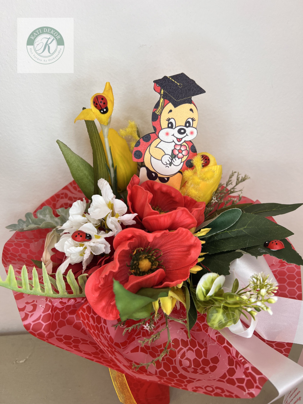 Ovis ballagási csokor katicával 35 cm